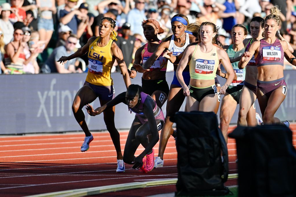 オレゴン州ユージーン — 月曜日に行われた米国トラックトライアルの800メートル決勝の1周目で、五輪チャンピオンのアシング・モー選手の連覇への望みは潰えた。