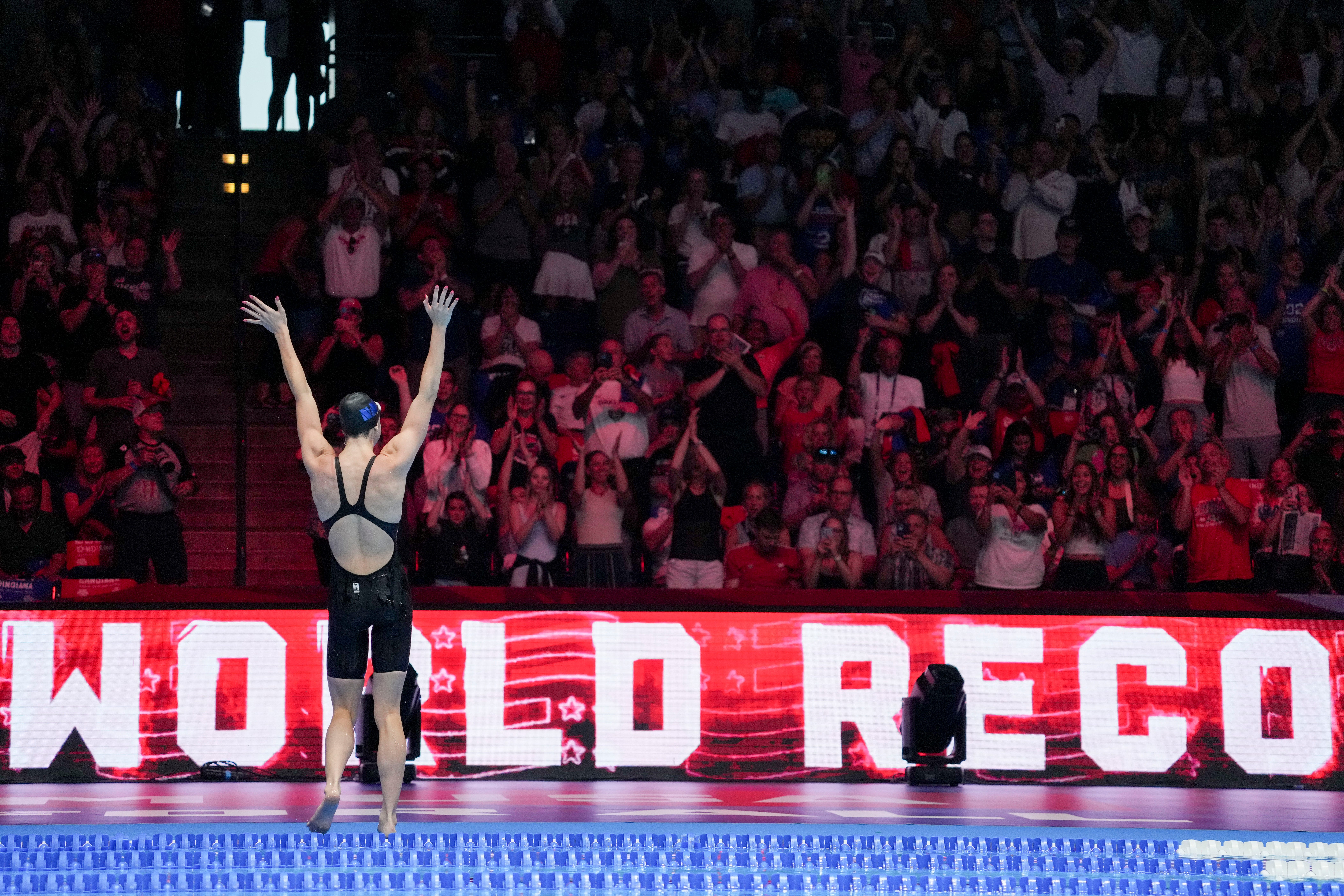 大学シーズン中にセンセーションを巻き起こしたバージニア大学のグレッチェン・ウォルシュは、50メートルプールへの転向に成功したことを示した。 彼女はオリンピック代表選考会で初めての世界記録を樹立し、100メートルバタフライの準決勝で55秒18を記録した。 21歳のウォルシュは、パリオリンピックに出場するには日曜日の夜に再びあのペースで走らなければならない。 トリ・ホスク(55.79秒)とリーガン・スミス(55.92秒)も56秒を切っていた。 これまでの世界記録は、2016年にスウェーデンのサラ・ショーストロムが記録した55.48点だった。ハスキーは55.64点のアメリカ記録を保持していた。